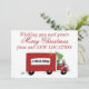 Este é um cartão de Natal um tanto humorístico para uma empresa que se mudou e gostaria de informar seus clientes do novo endereço. Uma van de mudanças tem uma pequena árvore em cima da cabine, e a guirlanda está voando atrás dela.