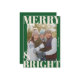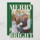 Espalhe alegria natalina com este cartão de Natal "Merry & Bright" ousado e moderno, apresentando tipografia superdimensionada e um layout de foto completo. A paleta de cores elegante em verde e creme claro emoldura seu momento familiar precioso com um toque divertido e festivo.