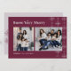 Um design moderno e festivo para seus cartões de natal com duas fotos alinhadas lado a lado, em um fundo profundo de ameixa de inverno enfeitado com terras em flocos de neve ao lado direito. "Muito Feliz de Neve" aparece no topo em letras retrorreflectoras, com seu nome de família e o ano na parte inferior. Um design de cartão de férias moderno e atraente para o Natal de 2021.