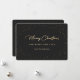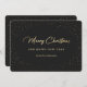Cartões de natal esbeltos e dourados com neve dourada sobre fundo preto. Personalize facilmente esses cartões de natal minimalistas com seu nome de família e texto.