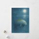 Sob uma lua luminosa, um gentil peixe-boi flutua em águas calmas e estreladas.