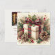 Capture o espírito natalino rústico com este cartão de Natal exclusivo em forma quadrada, de uma linda caixa embrulhada com um laço xadrez de noiva, rodeado por azevinho e pinhas. Os modelos são fornecidos com imagem no verso.