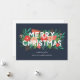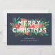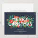 Envie saudações de Natal personalizadas e bonitas com este cartão elegante, apresentando vários elementos florais desenhados à mão (pinheiro, flores, botões, pinhas, folhas e raminhos). A tipografia moderna lê "Feliz Natal" em branco, e os elementos foliares são sobrepostos abaixo, com alguns elementos acima do texto. Os modelos de texto tanto na frente quanto no verso são fáceis de personalizar. A cor do fundo (mostrada em azul cinza ardósia) pode ser personalizada para uma cor diferente, se desejado. *Todas as obras de arte criadas exclusivamente pela Orabella Prints - todos os direitos reservados.