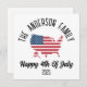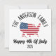 Adicione um toque festivo às suas comemorações de 4 de julho e reunião familiar/ A design apresenta um belo mapa americano de bandeira dos EUA, com branco vermelho e azul, Isto é perfeito para abençoar seus amigos no dia 4 de julho! O destaque? Um recurso personalizado de nome da família! Adicione seu nome de família ao design, como "A Família Smith", criando um cartão de feriado único e ponderado que é realmente seu.
