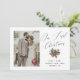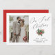Envie este belo nosso primeiro cartões de agradecimentos de Natal, recém-casado, com uma foto na frente e um texto moderno que diz "Nosso Primeiro Natal e uma folhagem festiva de amora de água. Substitua a frente pela sua foto de casamento. O dorso é um vermelho festivo com uma árvore de Natal fofa. Design perfeito para o seu cartão de Natal.