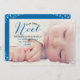 "Nosso Primeiro Noel" modelo de design de cartão de Natal personalizado apresenta uma borda de floco de neve branca e uma sobreposição de texto estiloso em azul cobalto e preto carvão que emoldura lindamente a foto do primeiro Natal do seu novo bebê.