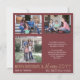 Novas Aventuras de Ano Novo! Envie à família e aos amigos desejos alegres e otimistas para o ano que vem com cartões de natal quadrados de colagem de fotos na moda 4. Toda a redação desta modelo é simples de personalizar. O moderno vermelho-burgundy, ouro e design apresenta caligrafia com estilo manuscrito moderno, tipografia minimalista clássica e quatro fotos da sua escolha. A família e os amigos adorarão mostrar estes cartões personalizados únicos e elegantes. Observe que o ouro é impresso a cor, não a folha metálica. Feliz Natal e Feliz ano novo!