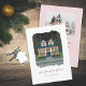 Ilustração original de casa colonial de Natal com neve começando a cair. Foto opcional e área para novo endereço no verso, ou personalize ainda mais o design para remover o verso.
