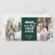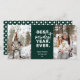 O ano mais estranho do mundo, humor de férias de 2021, caçador verde de 2 cartões com fotos. Recursos da placa, padrão branco desenhado à mão, com suporte para string em branco e três linhas de modelo para sua saudação, nome e ano.