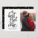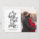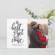 Este cartão com fotos de feriado de Ano Novo apresenta a frase "o melhor ainda está por vir" em preto sobre um fundo branco, com sua saudação personalizada por baixo. Sua foto é exibida à direita. O fundo é um padrão preto e branco.