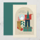Um cartão divertido com uma ilustração alegre e divertida de diferentes objetos da temporada de férias empilhados