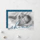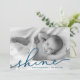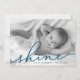 Compartilhe cartões de natal com esses cartões com fotos chic Hanukkah apresentando sua foto horizontal ou paisagística favorita de sangria de cheio. "Brilho" aparece como uma camada de texto azul-oceano na elegante tipografia de scripts com letra de mão. Personalize com seus nomes e o ano na base. Cartões que combinam azul escuro com uma camada de neve.
