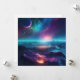 Oceano alienígena gerado por IA com cores neonatais e luas no céu