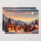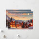 Uma vila de Natal bonita à noite toda iluminada com luzes de Natal e neve derrubou montanhas. Um cartão festivo bonito ao qual você pode adicionar sua própria mensagem e nomes de feriado personalizados!
