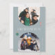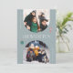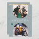 Cartão com fotos branco e mínimo de férias com dois quadros de arco azul de pedra com texto que diz "oh que divertido." Há também uma ilustração de uma cana doce e um Enfeites de natal. Você pode adicionar um total de 3 fotos neste cartão na frente e atrás.