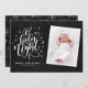 Noite sagrada, as estrelas brilham intensamente... Enviar cartões de natal com este cartão com fotos de feriado personalizável. Ele apresenta a inscrição "Oh noite sagrada" com um padrão festivo de feriado no quadro falso. Personalize adicionando nomes, fotos e outros detalhes. Este cartão de férias também será perfeito como anúncio de natalidade de feriado.