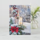 Lanterna nevada com abeto poinsettia e bagas econômico, adicione saudações com a ferramenta de design.