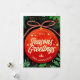 O design é composto por um enfeite natalino vermelho em um fundo escuro. Adicione o nome da sua família, ano e mensagem personalizada.