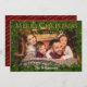 Um cartão de Natal atraente e atraente com a sua foto de família realçada por um quadro de ramos de árvore de Natal. Ouro espumante Feliz Natal ao longo do topo e seus nomes perto do fundo. A parte de trás apresenta um padrão repetido do Feliz Natal dourado contra um vermelho escuro.