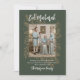 Celebre com elegância usando nosso cartão de Eid Mubarak com foto botânica em verde floresta e glitter dourado. Este design deslumbrante apresenta um fundo verde floresta profundo e sofisticado adornado com uma moldura de folhas com glitter dourado brilhante que envolve o retrato da sua família querida. A caligrafia moderna em roteiro branco adiciona um toque de classe aos seus votos de Natal personalizados.