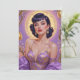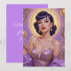 Cartão De Festividades Ovos de Páscoa Pin-Up Morena com Dourado e Roxo