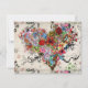 Uma colagem vibrante em forma de coração rebenta com designs florais intrincados e padrões giratórios. O trabalho de arte apresenta uma mistura de flores coloridas, formas abstrato e pontinhos, criando uma composição dinâmica e viva.