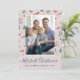 Padrão de aquarela com cervo, pássaro, árvore e folhagem, sua foto favorita, sobreposição de script "Natal Mais Alegre" em cartão de Natal rosa poeirento.