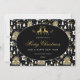 Cartão De Festividades Padrão de Inverno Preto Branco Dourado