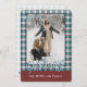 Este cartão de saudação de Natal se destaca pelo design elegante e único. Apresenta uma saudação atemporal de "Felizes Festas", personalizável de acordo com sua preferência, em um design de padrão xadrez azul-teal, branco e vermelho-marrom. A frente oferece espaço para o nome da sua família, foto e saudação sazonal personalizada, enquanto o verso é perfeito para adicionar uma mensagem sazonal personalizada ou poema. É uma maneira elegante de enviar seus votos de Natal.