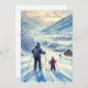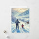 Cartão De Festividades Pai e Filho Bonitos Esquiam Juntos Aquarela