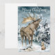 Cartão De Festividades Paisagem de Inverno Aquarela Alce Postala de Natal