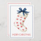 Este cartão de Natal bonito inspirado na costa apresenta um estoque clássico de Natal com caranguejos vermelhos em branco e um arco azul escuro no topo. Personalize com sua escolha de texto especial na frente e atrás.