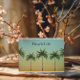 Envie uma onda de calor tropical nesta época do ano com nossos cartões de Natal com tema de vida na praia com palmeiras. Perfeito para quem prefere praias arenosas a montes de neve, este design apresenta três palmeiras icônicas recortadas contra um pôr do sol vintage deslumbrante. Este cartão de Natal tropical é uma escolha ideal para famílias que vivem em climas costeiros ou para quem quer enviar uma vibe de "Mele Kalikimaka" para amigos e familiares em todo o mundo. Com um layout moderno e limpo e uma paleta de cores vibrantes de azul oceano e amarelo bronzeado, esses cartões se destacam em qualquer lareira. Personalize o interior com sua própria mensagem festiva para criar um cartão de Natal personalizado com tema costeiro que captura a essência de um inverno ensolarado.