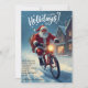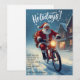 Cartão De Festividades Papai Noel Adorável em Bicicleta no Natal em Aquar