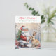 Cartão De Festividades Papai Noel Antigo Natal e Coelho