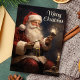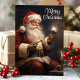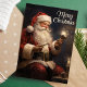 Celebre a magia do Natal com este cartão lindamente ilustrado com um Papai Noel tradicional segurando uma vela acesa. A mensagem "Feliz Natal" adiciona um toque atemporal, tornando este cartão perfeito para compartilhar votos calorosos de férias com amigos e familiares.