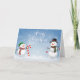 Boneco de neve celebrando enquanto a neve cai enviando votos festivos. Você pode adicionar seu próprio verso usando o modelo. Compre seu cartão hoje clicando no link da loja.