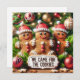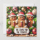 Homens de Pão de Mel vestidos como Papai Noel com as palavras "Nós viemos pelas bolachas".