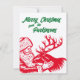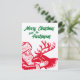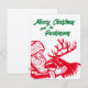 Cartão De Festividades Papai Noel e Rena em Xilogravura Antiga