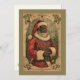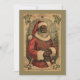 Esta imagem é um cartão de Natal antigo que apresenta um Papai Noel negro. O cartão mostra o Papai Noel vestindo um casaco e um chapéu vermelhos, ao fundo, há uma árvore de Natal. As cores da imagem são principalmente marrom, bege e vermelho, verde-sage com acentos de marrom escuro. O tema geral da imagem é festivo e tradicional, retratando a figura icônica do Papai Noel durante a temporada de festas.