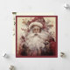 Este é um cartão de Natal antigo que apresenta um Papai Noel negro no estilo Rococó. O cartão mostra o Papai Noel vestindo um casaco e chapéu vermelho ameixa com detalhes florais cor-de-rosa. As cores da imagem são principalmente vermelhas, brancas e rosadas com detalhes em marrom escuro. O tema geral da imagem é festivo e tradicional, representando a figura icônica do Papai Noel durante a temporada de festas.