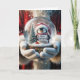 Cartão De Festividades Papai Noel segurando um globo de neve pinguim