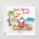 Celebre a época ensolarada com este cartão alegre de férias de Verão de Feliz de Verão, com o Pai Natal a relaxar na praia! . Perfeito para amantes tropicais de Natal ou qualquer pessoa que comemore um feriado de clima quente com um toque de humor festivo. Ideal para férias de verão, festas de praia ou Natal no paraíso.