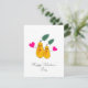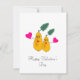 Cartão de feriado com par de peras amarelas fofas e corações