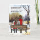 Uma convidativa cena campestre nevada é observada por um doce jovem casal em um banco neste cartão de aquarela com uma mensagem romântica para sua esposa no Natal.