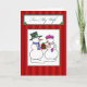 Um bonitinho bonitinho temia cartões de Natal para mulheres. Estes cartões de Natal apresentam um fundo listrado vermelho com um boneco de neve e uma boneca de neve dando presentes de Natal uns aos outros. Personalize a dentro da placa para adicionar seu nome.