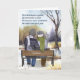 Este casal idoso apaixonado observa a neve e a bela paisagem rural neste carinhoso cartão de Natal para o seu parceiro de vida, que apresenta dois homens com pele morena e cabelos grisalhos e brancos.