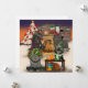 Lindos cães Newfoundland desenhados e coloridos à mão apresentados em uma celebração de RV motorhome de férias, completo com uma fogueira, árvore de Natal gigante, luzes e até refrescos!