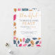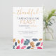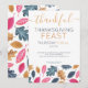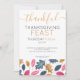 O Convite de festas de Janto de Ação de Graças da Woodland Leaf de Ricaso Este janto de feriado encantador convida com um delicado detalhe de fonte de rolagem em cor de ouro com a palavra "agradecido" - e um padrão azul, rosa, verde e de folha de ouro para a frente e para trás