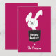 Este charmoso cartão de férias apresenta um adorável coelho branco de desenho animado que cai de um bolso preto sobre um fundo vermelho magenta vibrante. A design mostra uma tipografia divertida para o desejo e uma escrita manual moderna para o nome, acrescentando um toque pessoal. Com um estilo magenta magenta vermelho-e-branco minimalista, esta placa é totalmente personalizável — facilmente altera o tamanho, a cor ou adiciona um nome. Ideal para a Páscoa, faz uma manutenção memorável para amigos, família e colegas de trabalho. Explore nossa coleção de cheios para combinar produtos para elevar suas saudações festivas. Celebre em estilo com este cartão exclusivo e personalizável!